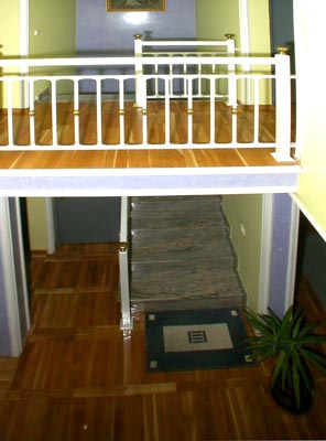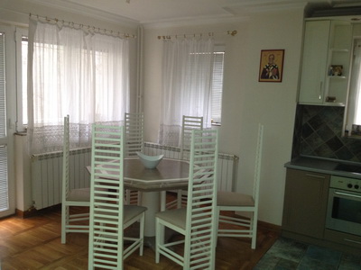 Apartmani Beograd centar, za jeftino izdavanje apartman-1 je povrsine 120 m². Jeftin smestaj u Beogradu a kvalitetno i moderno opremljen, sastoji se od dva kupatila i tri spavanje sobe. U prizemlju apartmana je: salon apartmana sa ktv, kablovski internet, bar-kuhinja, trpezarija, kupatilo sa tusem, terasa koja gleda na zelenilo i bastu, klima uredjaj je takodje sastavni deo apartmana u Beogradu. Na galeriji apartmana u Beogradu su: kupatilo sa Ä‘akuzi kadom, i tri spavaće sobe (1/1 i 2/2). U dvokrevetnim sobama, apartmani Beograd, smestaj 1, su francuski lezajevi sa americkim plakarom od ogledala i ktv. U jednokrevetnoj sobi je krevet i radni sto apartmana sa koznom foteljom smestaja. Maksimalan broj gostiju u ovom smestajnom objektu i konkretno za ovaj apartman je 5+1.